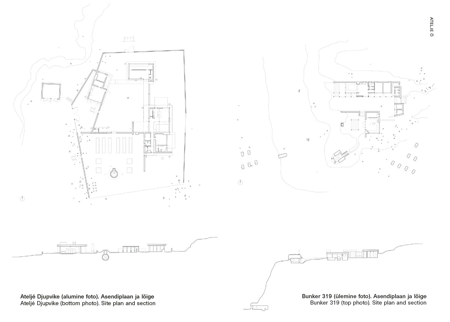 Ateljé Ö started where Skälsö left off in 2019. We were commissioned to develop a residential project called Bunker 319. The site had a small obsolete bunker situated atop a 20-metre-high cliff with a view of the Baltic Sea. The added spaces consist of four low houses developed around the bunker. The work to incorporate the bunker and create new spaces has transformed the site from rubbly remains into an oasis, all the while not disregarding the site’s history. The additions together with the already existing structures frame a terraced exterior space, thus creating a courtyard on the premises. A lonely tree grows in the middle, giving the space a semblance of a tiny village square. The spatial programme is spread across the site and the design of the gap-spaces interweaves new with old, outdoor with indoor, and natural with artificial.