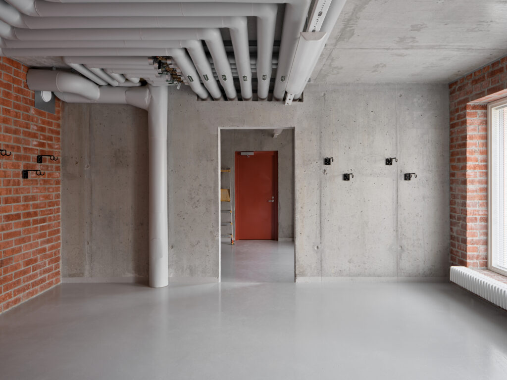 The project is a breakthrough in several aspects that might appear mundane at first glance. The thermal performance of the monolithic brick wall assembly required a special exemption from the Helsinki Building Control services, which normally requires an overall heat transfer coefficient, also known as U-value, of U=0.17 W/(m2K). However, Helsingin Muurarimestari was approved under the less stringent U-value of U=0.4 W/(m2K) for wooden log construction, a valuable precedent for future monolithic brick buildings. Despite the lack of modern heat recovery and exchange systems, the first few years of monitoring have shown that the performance is comparable to that of a more standard building. Heat exchange systems and mechanical ventilation have their own built-in energy costs, inevitably requiring electricity for their operation. The thermal mass of the brick structure has also performed surprisingly well in regulating temperature—something that is challenging to model with current building simulation models.