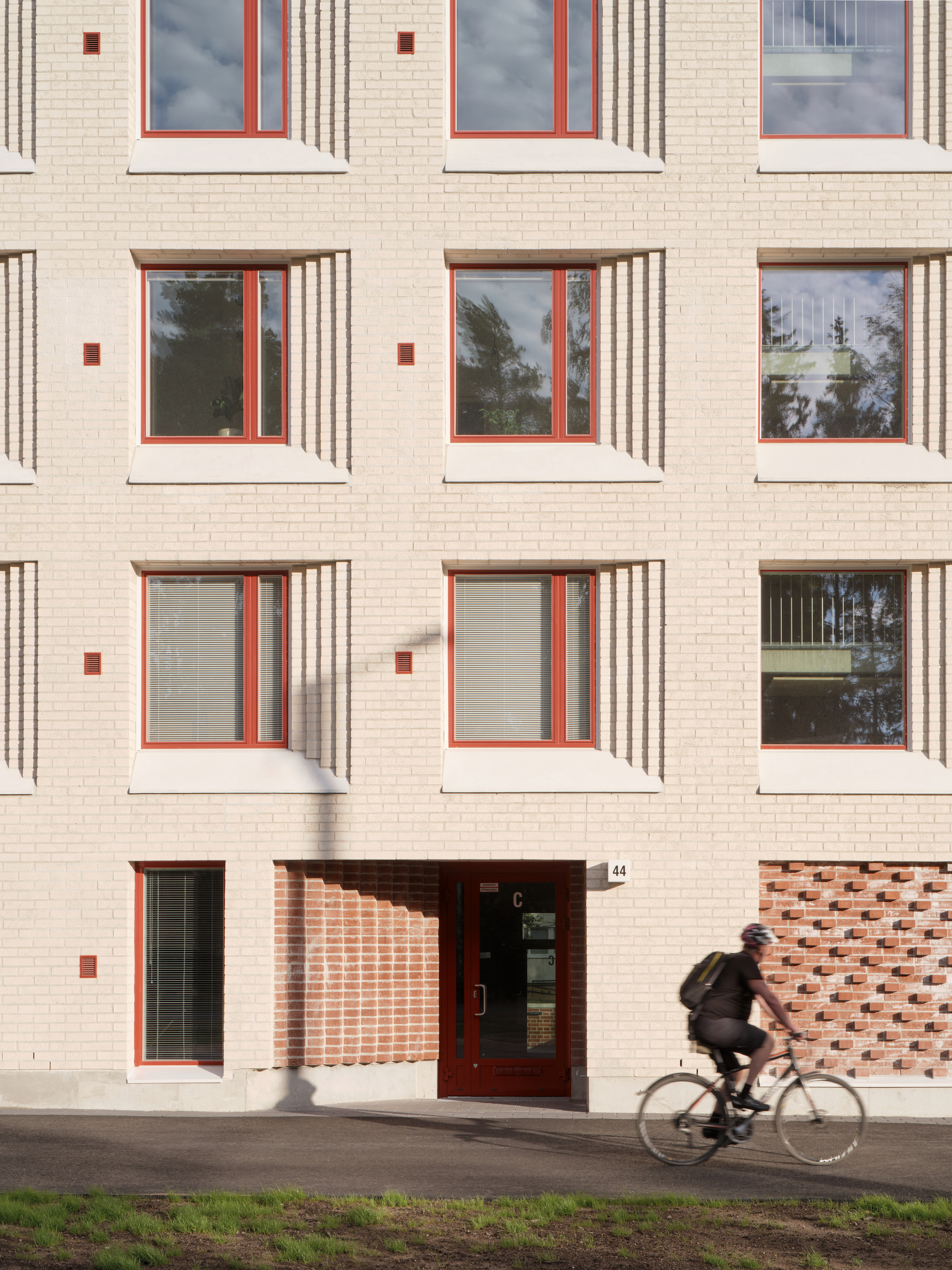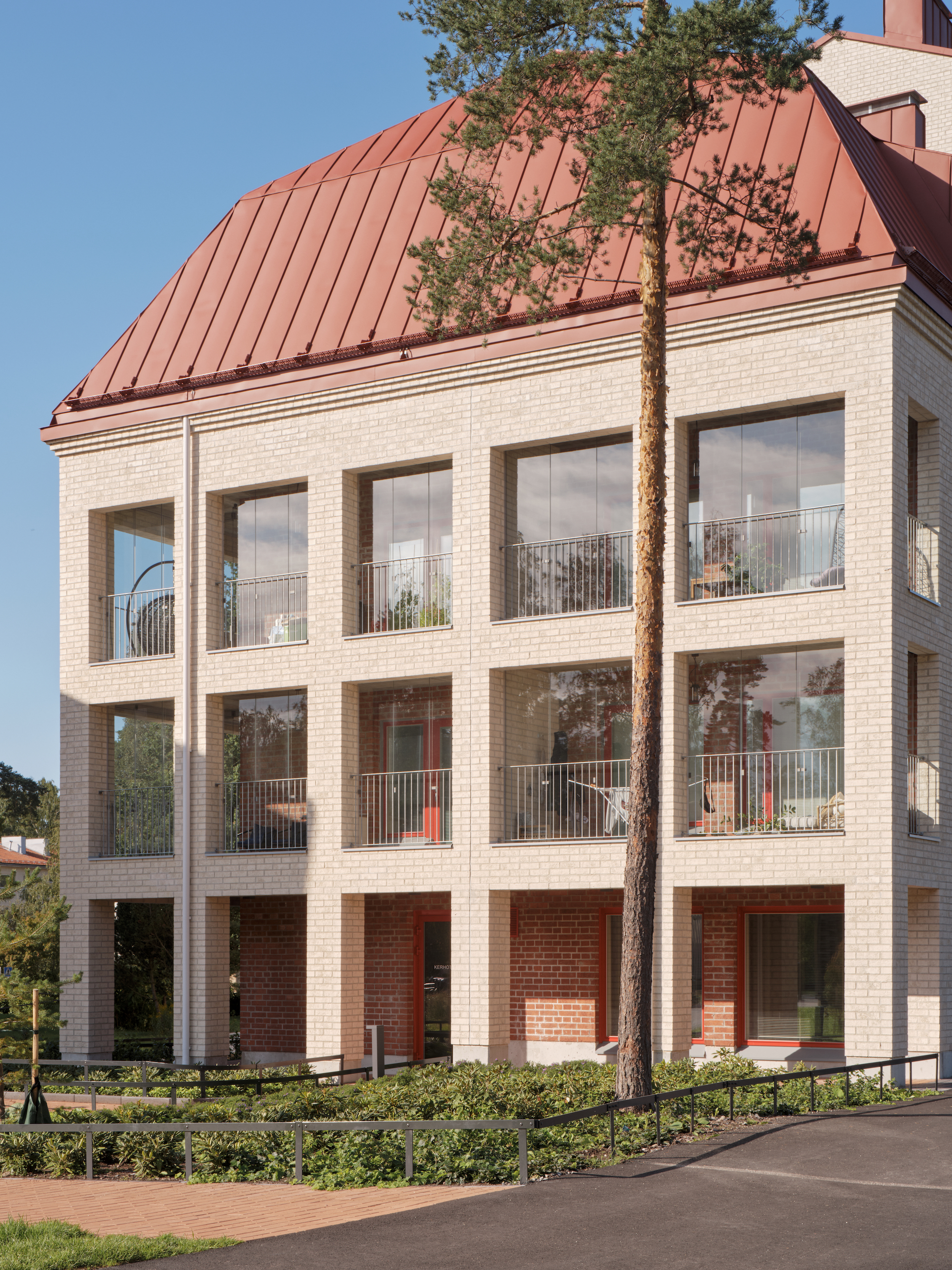 There is also an inevitable tinge of conservative nostalgia that permeates the discussion around the project—that things were just better in the ‘good old days’. The architects say that they’ve shown the building over 350 times since it was completed two years ago—not just to architects and other building professionals, but also to those interested in traditional forms of construction and ventilation. The monolithic brick walls and chimneys harken back to the Nordic Classical buildings of the turn-of-the-20th-century Finland. Many of the oldest (and most expensive) neighbourhoods in Helsinki were built in this way, and it carries with it a timeless and enduring quality that is deeply rooted in the Finnish psyche. Indeed, one of the main disappointments for those looking for a more traditional building is the absence of oak windows and fireplaces.