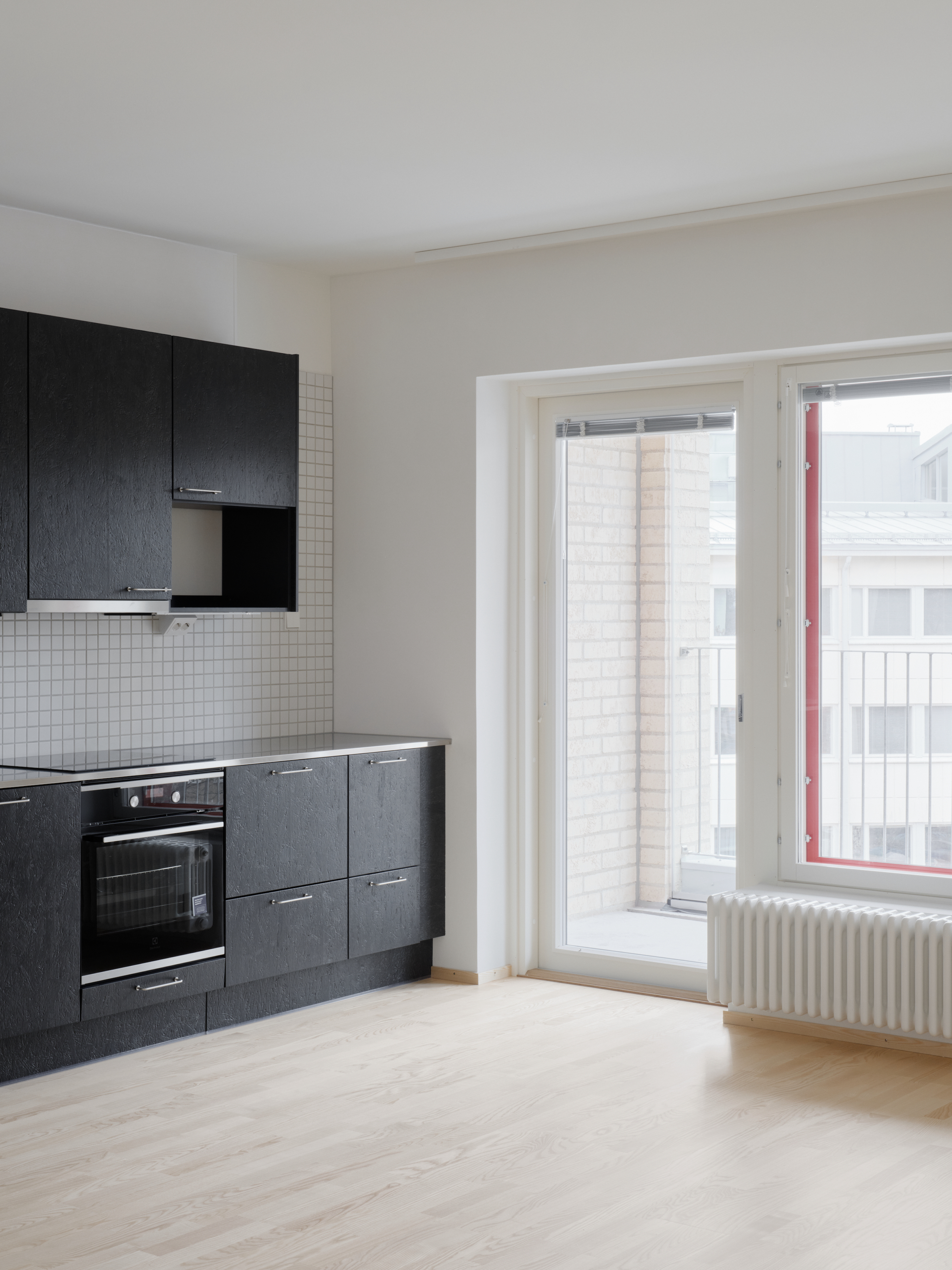The project, however, is decidedly modern. It is generous to tradition, but not simply replicating those techniques for their own sake. It represents a clear and deliberate attempt at exploring the possibilities of constructing in monolithic brick today. Selective use of modern construction materials has played a supporting role in the performance of the building. The building’s concrete frame, for example, transfers the thermal mass far deeper into the building compared to wooden joists and beams used in historic brick construction. In place of the traditional lime-based mortar used in historic brick buildings, Helsingin Muurarimestari uses modern portland cement mortar, which offers far higher air-tightness performance. One particularly delightful innovation has been the integration of ventilation elements into the dividing walls of the balconies. While historic buildings have placed vents along the exterior facade, the current trend of large glazed balconies posed a particular challenge. Finnish fire safety regulations prevent the intake of air from glass-enclosed areas, and the architects have gotten around this by arranging the intake shafts in the dividing walls of the balconies—which the observant reader can see in the floor plans.