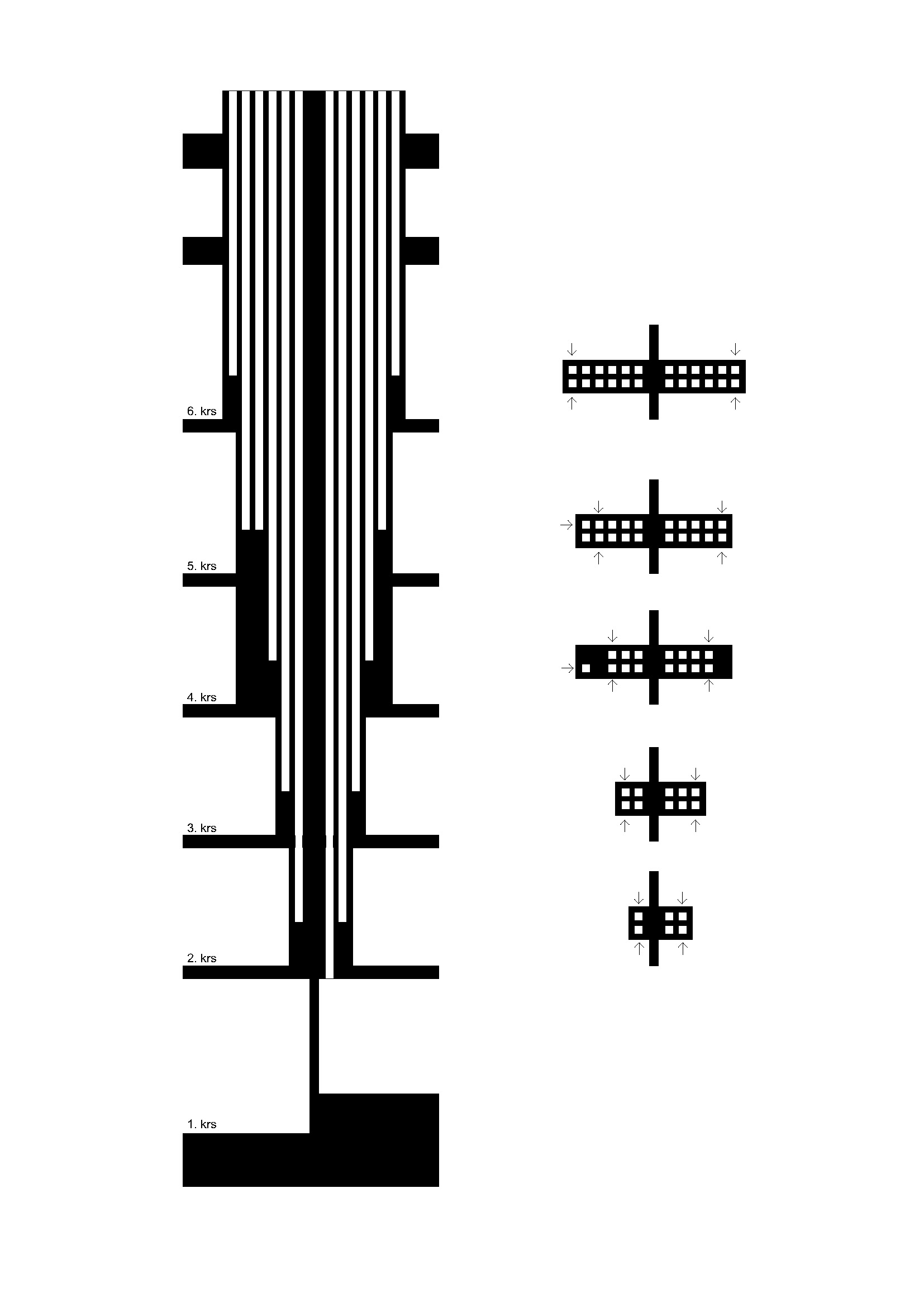 Helsingin Muurarimestari is a rare example of a contemporary housing project that utilises natural ventilation. With increasingly stringent regulations on building performance and concerns about the energy costs in heating and cooling, most new buildings utilise some form of heat recovery and exchange, i.e., a mechanically driven system where the heat from the exhaust air is captured to pre-heat intake air, reducing overall energy costs. Naturally ventilated systems, on the other hand, simply take air from exterior vents and channel them through the building. In the case of Helsingin Muurarimestari, exhaust air is channelled through a brick chimney that leads to the roof. Each unit has its own independent shaft in the chimney, which gets wider on the upper levels as more and more shafts are incorporated into the structure.