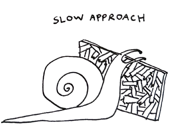 Keep it slow. Take your time to get to know the materials. By organising and paying attention, you may get inspired by some cracks or holes or nooks and see these materials in a new light. You might embark on an artistic adventure that is mindful of the materials’ sketchiness and therefore more sustainable.
