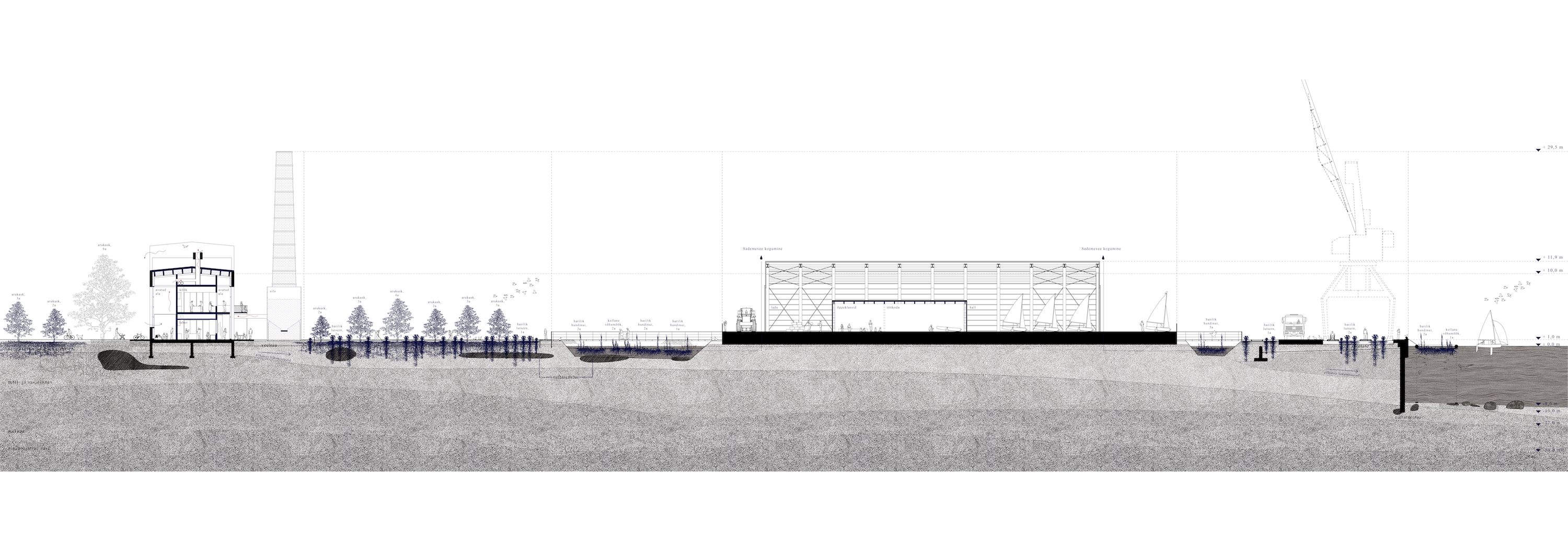 In my MA thesis defended at the Estonian Academy of Arts this spring, I envisioned how cleaning the polluted soil by means of phytoremediation technology could steer the transformation of a former industrial port area into a contemporary urban space.14 Phytoremediation, studied in Estonia at the TalTech Institute of Environment Technology, is a bioremediation technology using plants to break down pollutants on site and/or to absorb them from the environment.15 Eliminating the pollution cycling between the land and the sea by means of plants allows to point to the interconnectedness of natural and man-made environments. In the project, the characteristic landscape will emerge in the course of time, creating a new aesthetics for the given urban space. The project offers an alternative approach to designing urban environments that could be applied to remediating soils in former industrial areas along the Baltic Sea coastline.