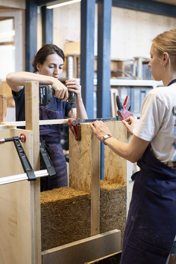 The research began with an analysis of the bioregional context and resources, then moving on to the development of the material and the prototyping of the wall junction.